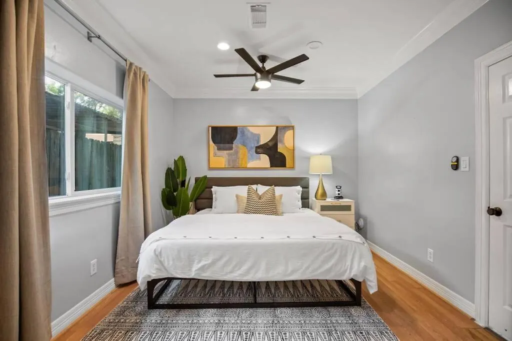 Gæster kan bo i Bohemian Dream @Historic Woodland Heights ferielejlighed når de er i Houston. Indkvarteringen indeholder 3 soveværelser, 3 badeværelser og et køkken.